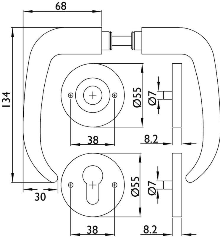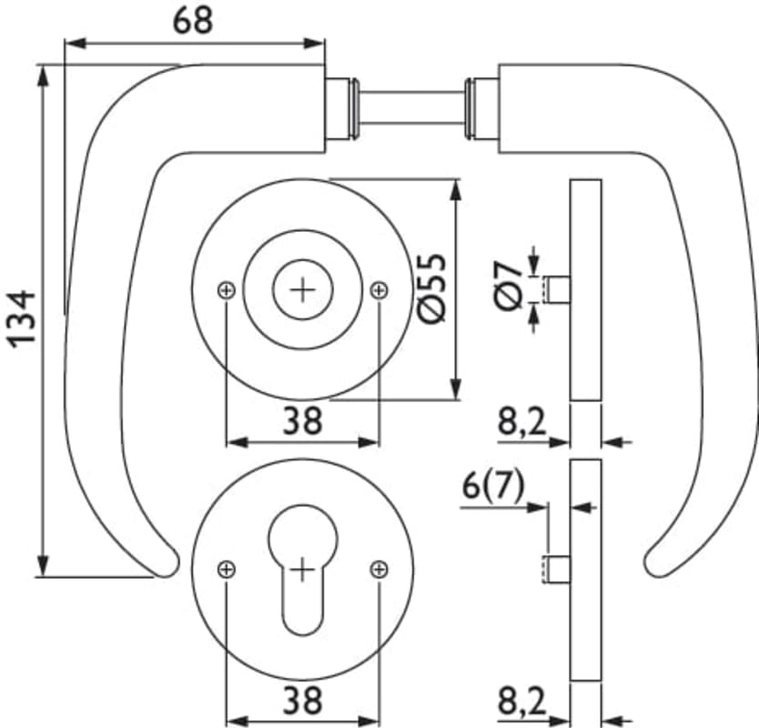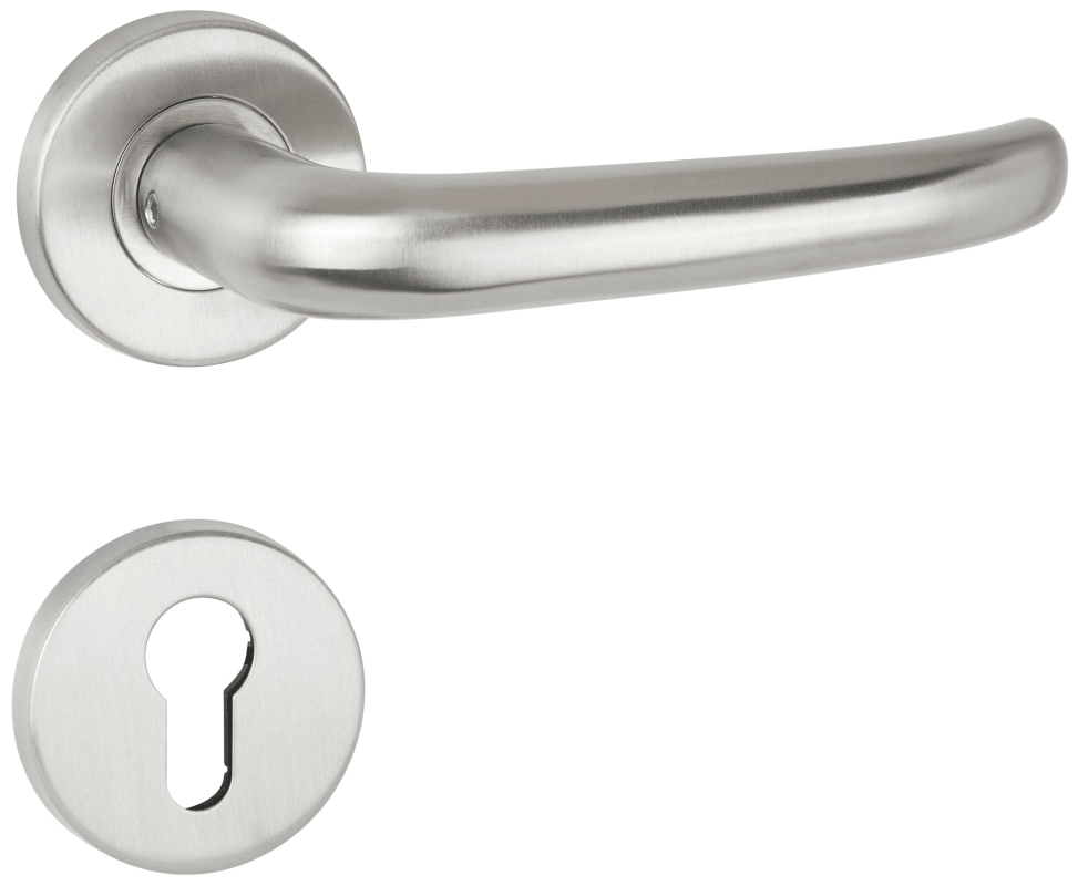 Feuerschutz - Drückergarnitur 1806 BASIC 06, mit Gleitlager Rosette 2073 FS fest/drehbar, Türstärke 40 - 58 mm / 9mm Vierkant, Oberfl. 60 (Edelstahl matt)