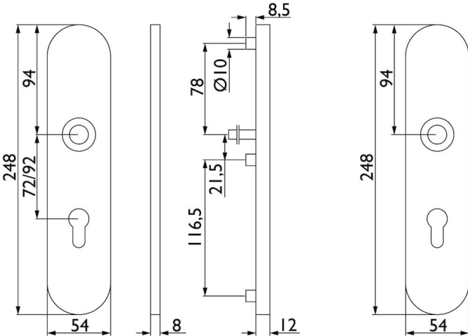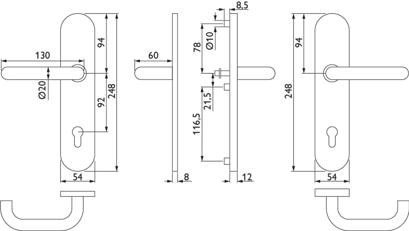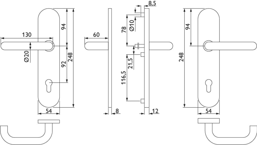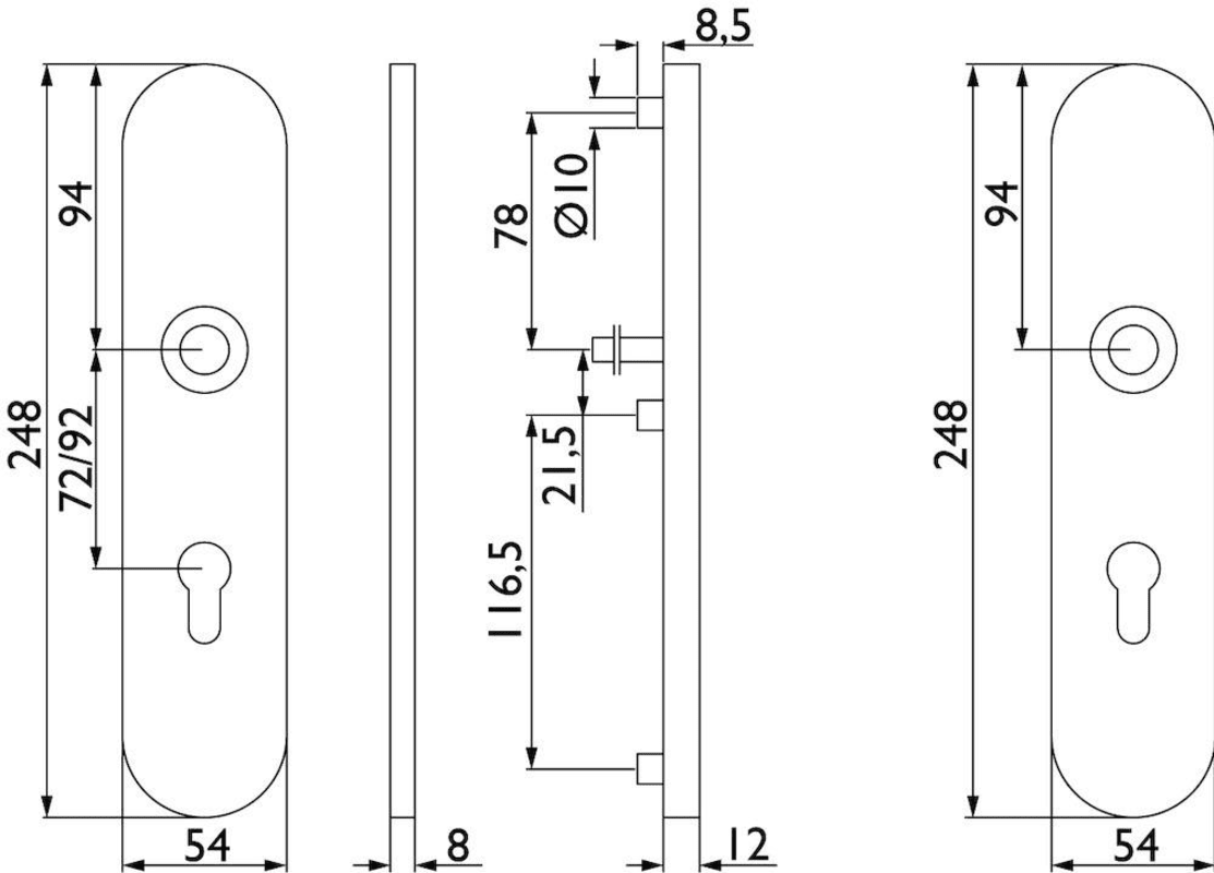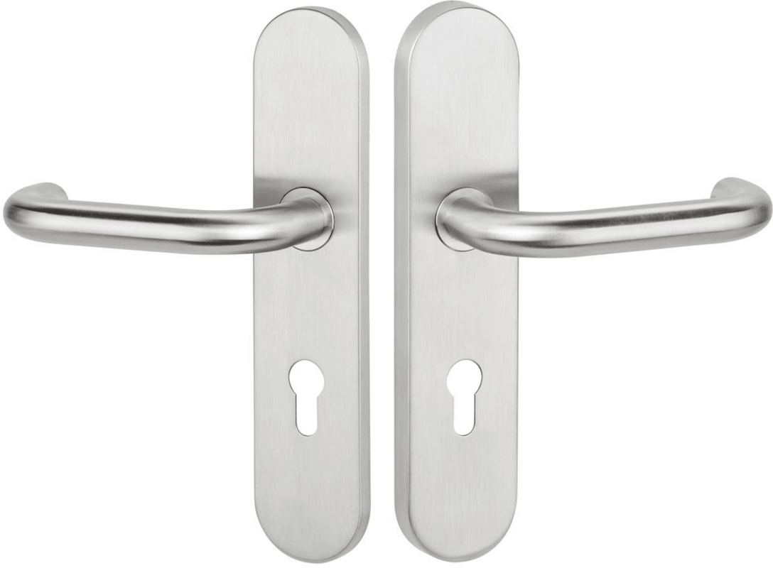 FS-EN2-Schutz-Drückergarnitur 1801 BASIC 01, mit Langschild 2089 S, Ausf.: PZ 92 mm, Türstärke 38 - 63 mm, mit Anbohrschutz, Außenschildstärke 12 mm, Oberfl. 60 (Edelstahl matt)