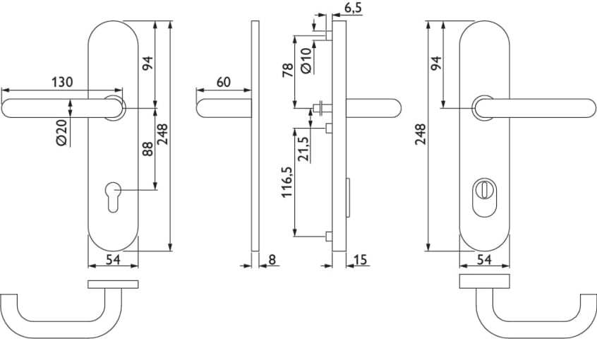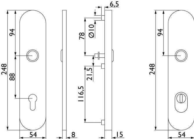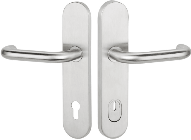 FS-Ö-EN3-Schutz-Drückergarnitur 1801 BASIC 01, mit Langschild 2089 KSH, Drücker fest/drehbar, Ausf.: PZ 88 mm, Türstärke 38 - 43 / 64 - 73 mm, mit Kernziehschutz für Zylinderüberstand 8 - 15 mm, Oberf