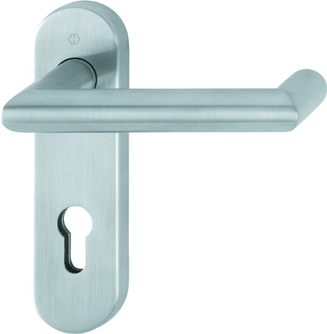 HOPPE® Drückergarnitur Rotterdam FS-E1401/353KH; Abdeckung: Kurzschild; Form: oval; Vierkant: 9 mm; Material: Edelstahl; Befestigungstechnik: mit Stütznocken; Befestigungsart: verdeckt verschraubt; Ba