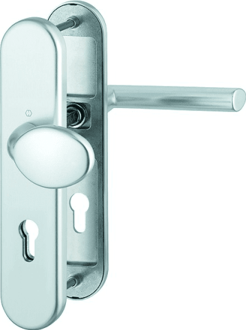 HOPPE® Schutz-Wechselgarnitur Stockholm FS-76G/3331/3310/1140F; Material: Aluminium; Befestigungsart: verdeckt verschraubt; Vierkant: 9 mm; Befestigungstechnik: mit Stütznocken; Abdeckung: Langschild;