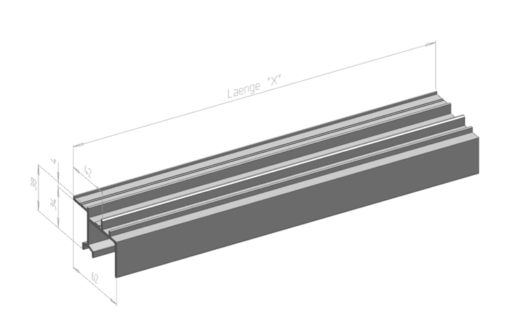 SIEGENIA Führungsschiene HH0130-02; Ausführung: oben; Material: Aluminium; Einsatzbereich: Hebeschiebe; Basis: Führungsschiene; Größe: 670; Ergänzung: Rahmenteil; Fensterwerkstoff: Holz,Kunststoff; Gesamthöhe: 38mm; Länge: 6.700mm; Gesamttiefe: 62mm; Oberfläche: eloxiert; Farbton: silber; Befestigungsart: zum Anschrauben