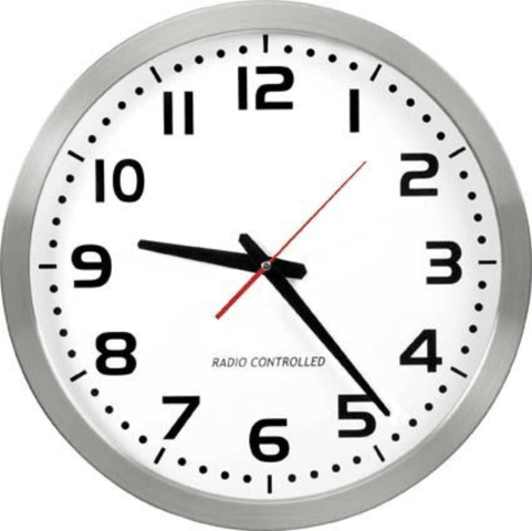 Edelstahl-Wanduhr • Gebürstetes Edelstahl-Gehäuse mit Mineral-Deckglas • Zifferblatt: schwarze Zahlenziffern und roter Sekundenzeiger • Betrieb: mit 1,5-V-LR6-Batterie (im Lieferumfang enthalten)