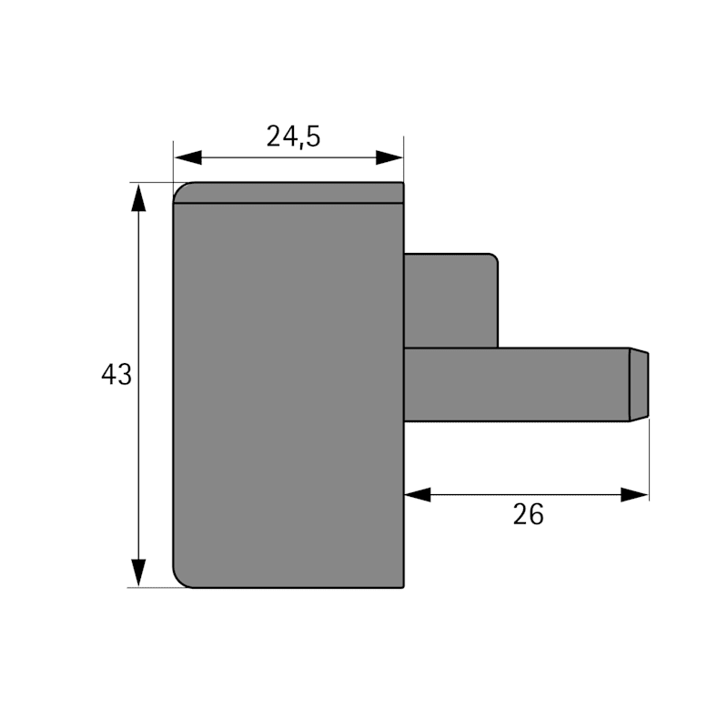 • Verbindet die horizontalen Beschlagcover, wenn kein vertikales Profil zum Einsatz kommt• Kunststoff