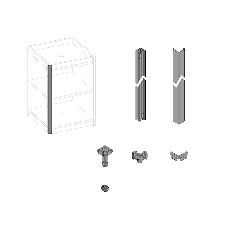 • Zubehörset für die vertikale Verbindung von Ober- und Unterboden eines Spin-Möbels• Pro Spin-Möbel wird ein Set benötigt• Optional: Fachbodenset für Fachböden• Profil und Cover: Länge 3000 mm, z