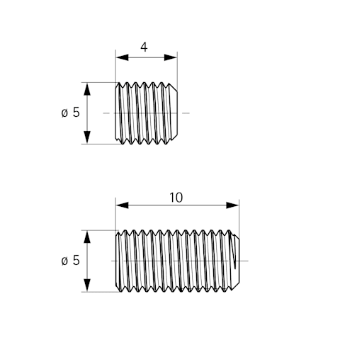 • Selbstfurchende Gewindeschraube M5 x 4 mm, DIN 913• Zur sicheren und spaltfreien Verbindung von Eckprofil oder Beschlagcover mit den Adaptern und Knoten• Die Gewindestifte setzen sich in die koni