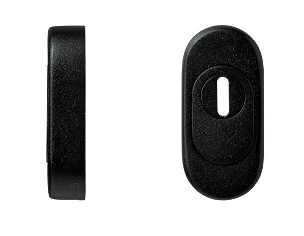 Die feinstukturierte Oberflächenbeschaffenheit sorgt für eine angenehmere Haptik auch bei kalten Temperaturen. Durch die Aussparung an der Rückseite auf Höhe der Befestigungslöcher ist die blaugelb Schieberosette PZ ZA oval BNM Black Line auch für Elemente geeignet, die bei der Befestigung Blindnietmuttern mit Rand einsetzen. Ein 100%iges planes Aufliegen ist damit gewährleistet.