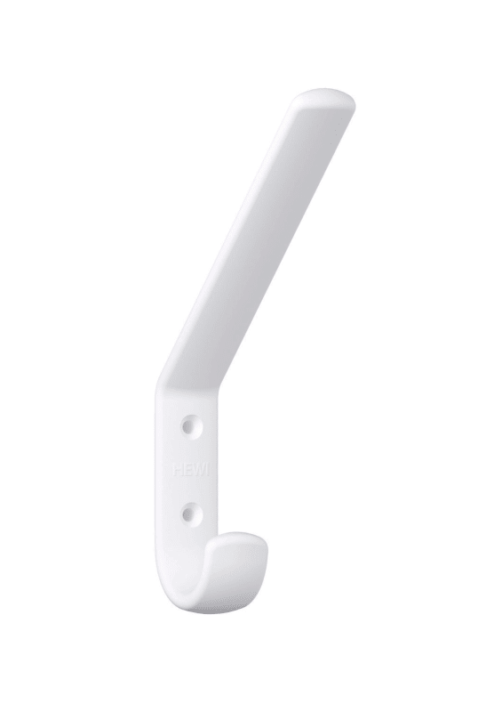 HEWI Hut- und Mantelhaken 477.90B071; Montage: zum Anschrauben; Material: Kunststoff; Befestigungsart: sichtbar verschraubt; Einsatzbereich: Garderoben; Farbe: weiß; Farbton: signalweiß; Breite: 22 mm