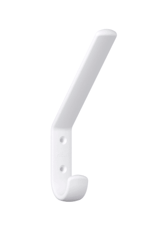 HEWI Hut- und Mantelhaken 477.90B070; Montage: zum Anschrauben; Material: Kunststoff; Befestigungsart: sichtbar verschraubt; Einsatzbereich: Garderoben; Farbe: weiß; Farbton: signalweiß; Breite: 22 mm; Höhe: 165 mm; Tiefe: 108 mm; Oberfläche: matt; Lochabstand: 28 mm; Basis: Hut- und Mantelhaken