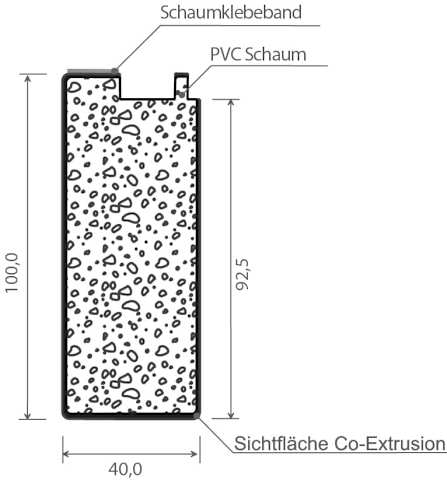 Gealan-Bodeneinstand 100 mm Lg. 6,50 m Weiß, 100x40 mm PVC Schaum, mit SK für 74er & 83er Nutzhöhe: ca. 92,5 mm