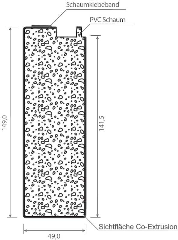 Gealan-Bodeneinstand 150 mm SK Lg. 6,50 m Grau, 149x49 mm PVC Schaum für Schwelle Nutzhöhe: ca. 145 mm