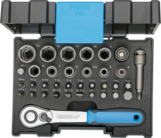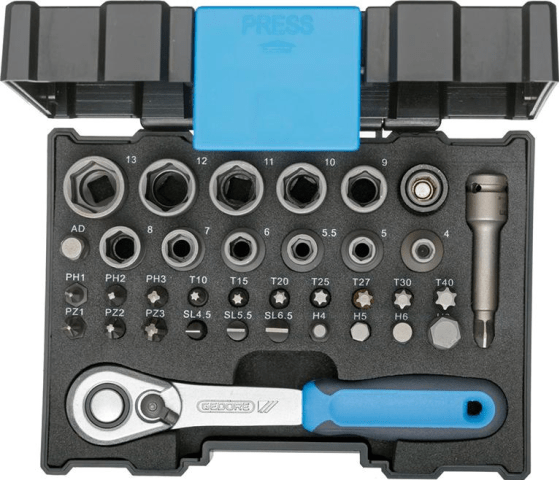 GEDORE Bit-Steckschlüsselbox mit Knarre 1/4" 35tlg