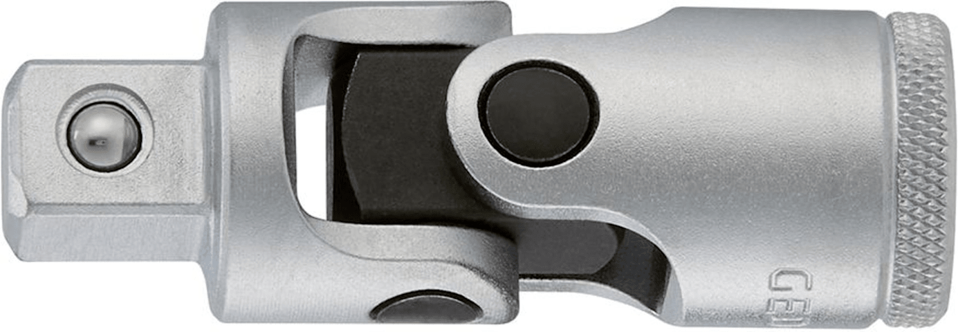 Kardangelenk 1/2", Nr. 1995• Geschliffen und verchromt • Chrom-Vanadium-Stahl 31CrV3 • DIN 3123, ISO 3316 • 4-kant-Antrieb DIN 3120-D 12,5, ISO 1174 • Kugelarretierung