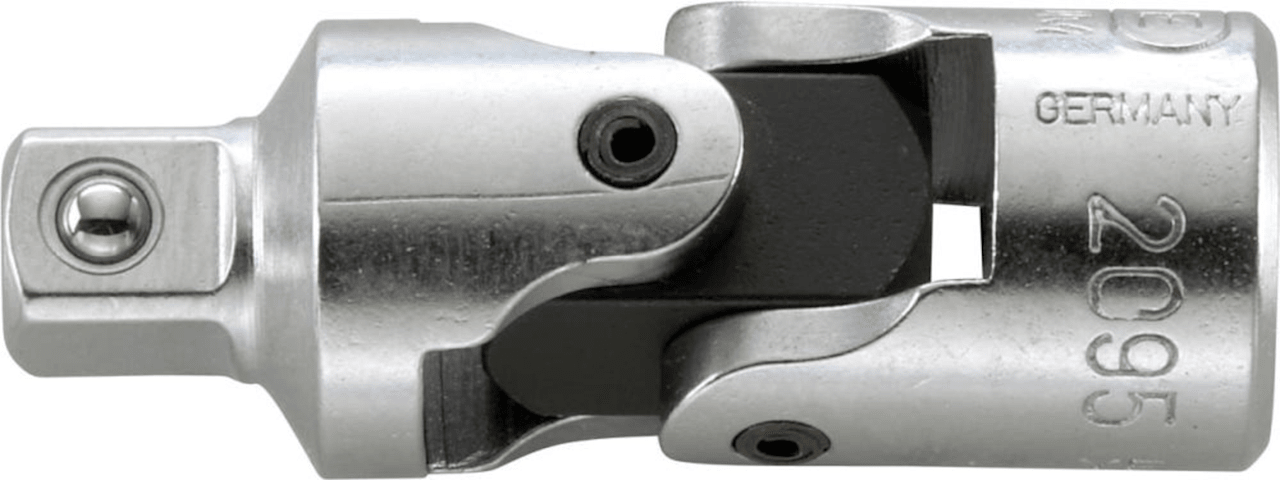 Kardangelenk 1/4", Nr. 2095• Geschliffen und verchromt • Chrom-Vanadium-Stahl 31CrV3 • DIN 3123, ISO 3316 • 4-kant-Antrieb DIN 3120-D 6,3, ISO 1174 • Kugelarretierung
