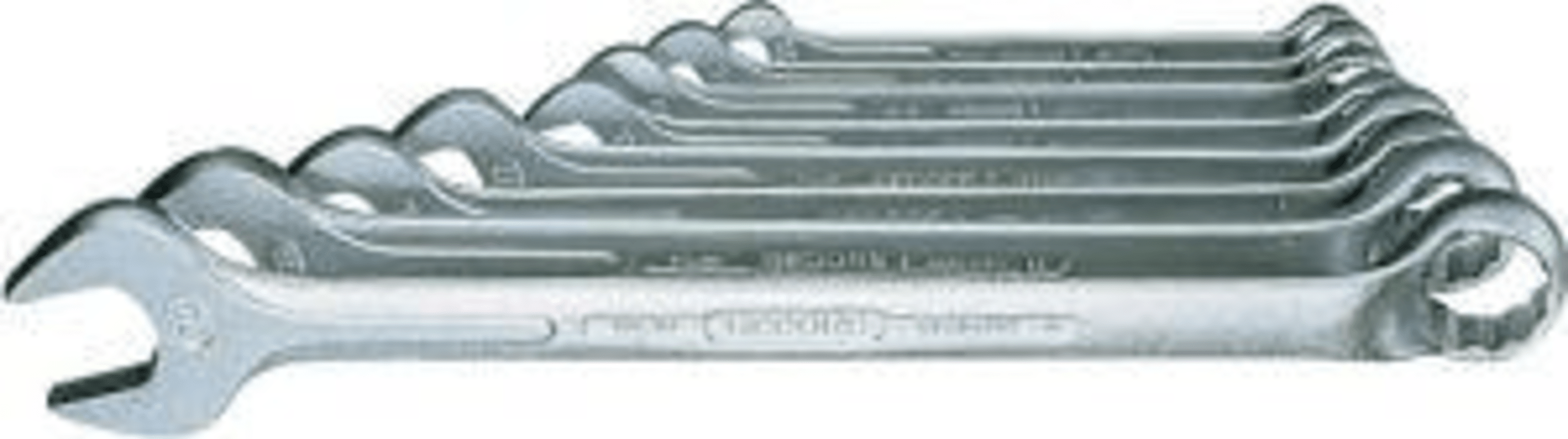 Mit gleichen Schlüsselweiten. Ringseite flach gekröpft, schlank, dünnwandig und stark. GEDORE-Vanadium-Stahl 31CrV3, W.- Nr. 1.2208, verchromt, Ringe poliert.