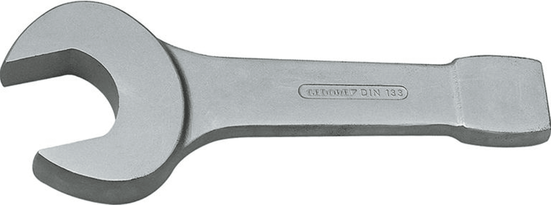 Ein Schlag-Maulschlüssel eignet sich zum Anziehen oder Lösen von besonders festsitzender Schraubverbindungen mithilfe eines Hammers.