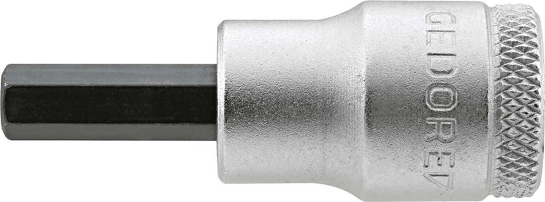 Ein Werkzeug, das speziell für das Anziehen und Lösen von Innensechskantschrauben konzipiert ist. Dieser Einsatz hat einen Innenvierkantantrieb nach DIN 3120 - C 10, ISO 1174. Er wird in verschiedenen