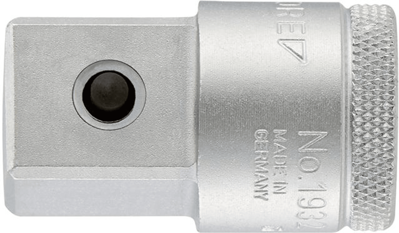 Vergrößerungsstück 1/2", Nr. 1932• Geschliffen und verchromt • Chrom-Vanadium-Stahl 31CrV3 • DIN 3123, ISO 3316 • 4-kant-Antrieb DIN 3120-D 12,5, ISO 1174 • Kugelarretierung