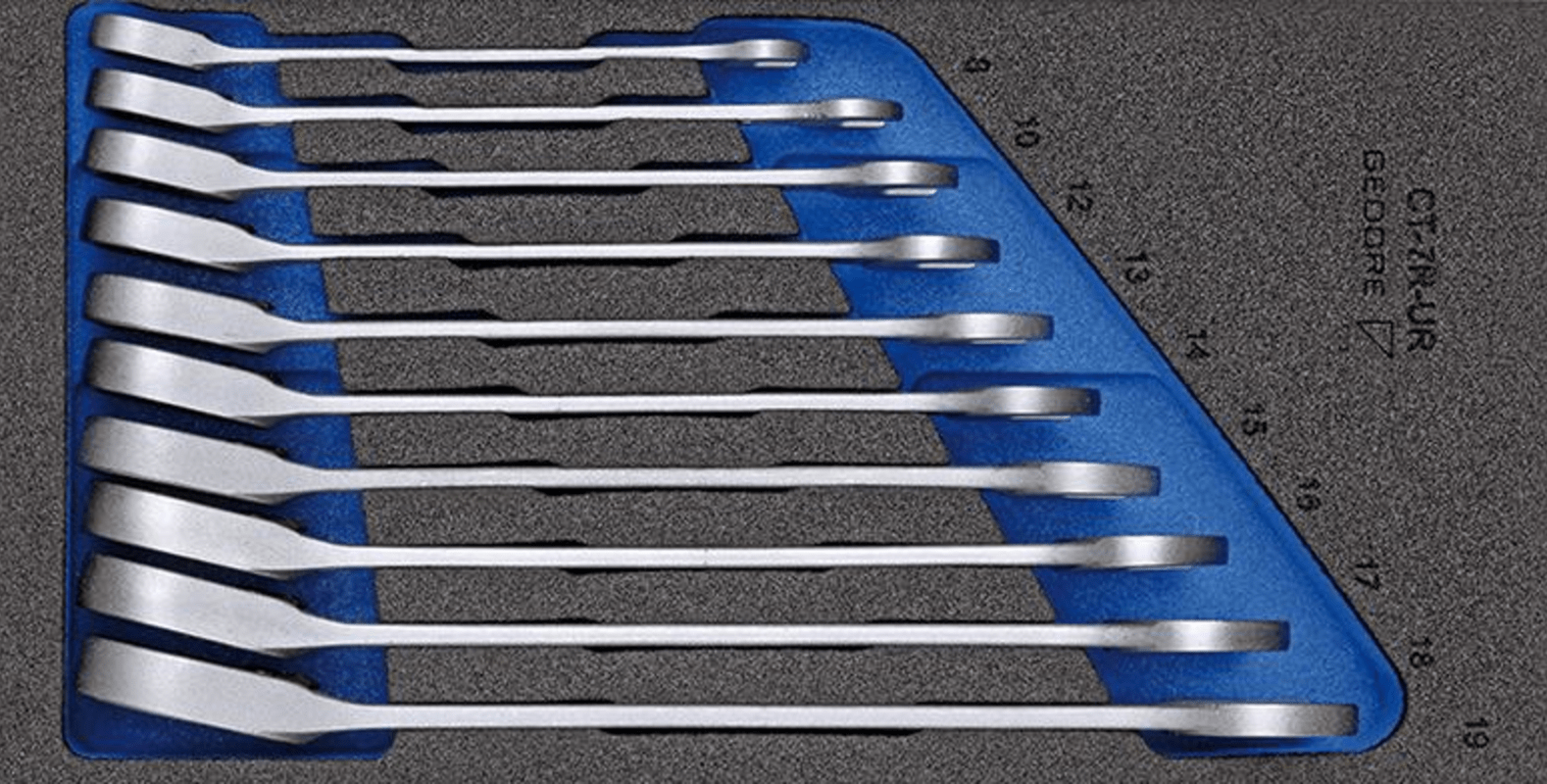 Werkzeugmodul Ratschenschlüssel, umschaltbar, Nr. 1500 CT1-7 UR• 2-farbige Schaumstoffeinlage, fehlende Werkzeuge auf einen Blick erkennen • Passend für GEDORE Werkstattwagen und GEDORE Rollwerkbank