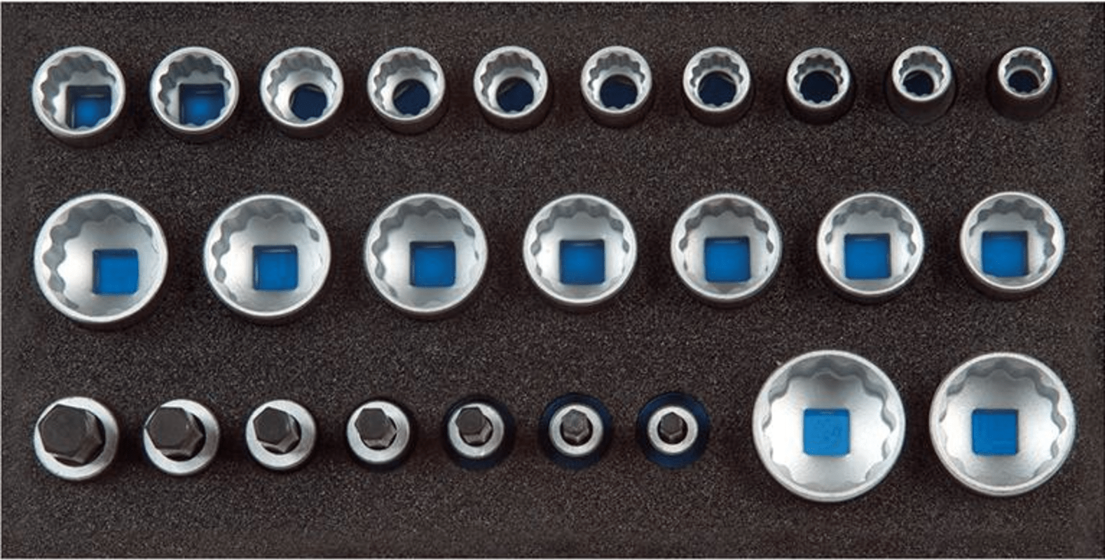 19 12-kant-Steckschlüssel-Einsätze 1/2" 10; 11; 12; 13; 14; 15; 16; 17; 18; 19; 21; 22; 23; 24; 26; 27; 28; 30; 32 mm