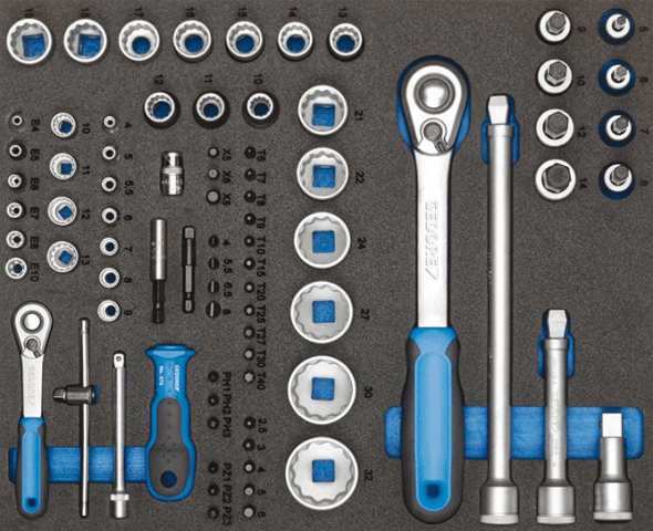 Das GEDORE Werkzeugsortiment in Check-Tool-Modulen 147-teilig (einliegend in Schaumstoff) ist ein Profisortiment, das praxisgerecht zusammengestellt wurde für den Einsatz vor Ort.