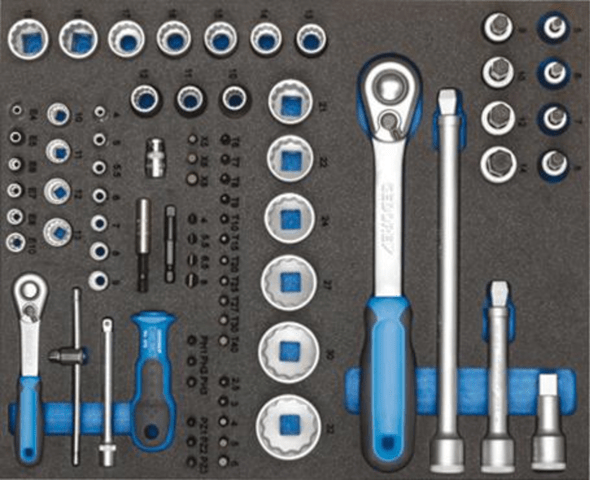 Das GEDORE Werkzeugsortiment in Check-Tool-Modulen 147-teilig (einliegend in Schaumstoff) ist ein Profisortiment, das praxisgerecht zusammengestellt wurde für den Einsatz vor Ort.