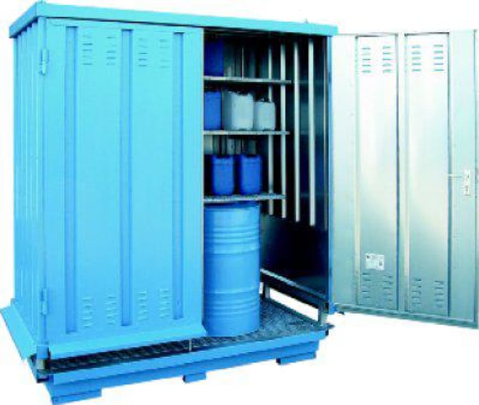 Hinweis: Dieses Gefahrstofflager ist für die passive Lagerung von wassergefährdenden Stoffen und entzündbaren Flüssigkeiten geeignet.