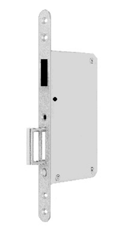 BKS Schiebetürschloss G353; Produkttyp: Schiebetürschloss; Produkttyp (Hersteller): Gegenkasten; Ausführung: mit Zirkelriegel,mit Springgriff; Stulpform: Flachstulp; Material Stulp: Stahl; Schlosskast