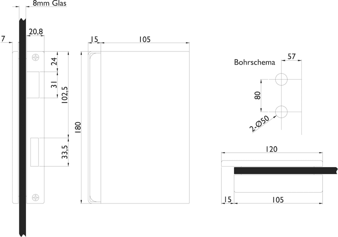 Glastür-Gegenkasten 6054 GKP - Molina, DIN links, mit durchgehender Anschlagplatte, Oberfl. 60 (Edelstahl matt)