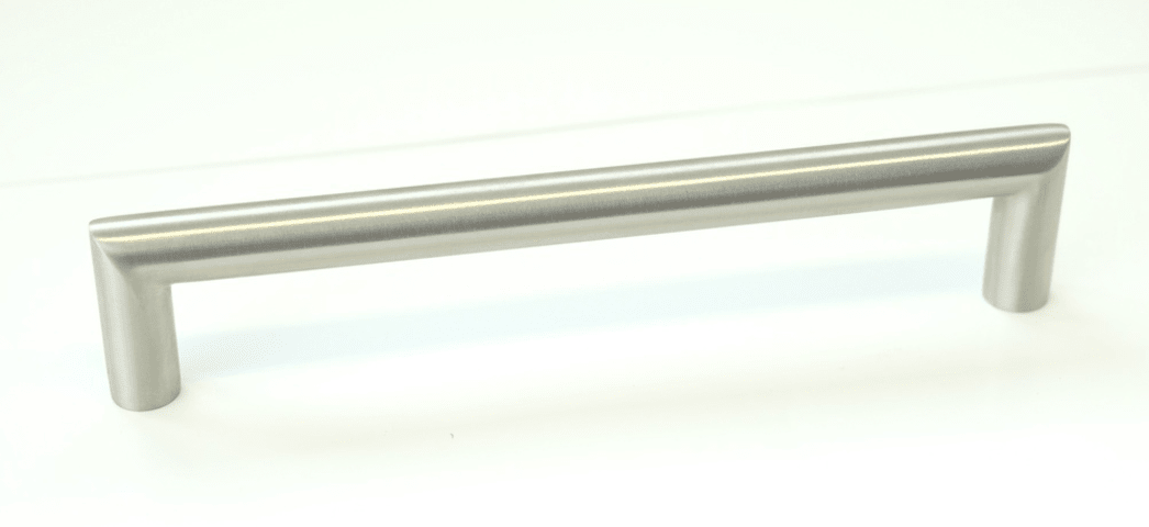 FORMAT, Möbel-Gehrungsgriff, Durchmesser: 12 mm, Bohrabstand: 128 mm, Länge: 140 mm, Höhe: 35 mm, Material: Edelstahl, Farbton: edelstahl, Oberfläche: fein matt, Befestigung: M4 Gewinde, Befestigungsa