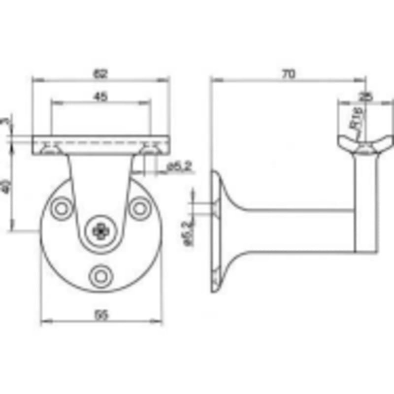 • gewölbte Auflage • Ausladung 64 mm • Wandplatte ∅ 53 mm • mit M8-Innengewinde