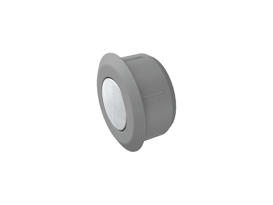 MAGNET, RUND, INKL. DUEBEL FUER BOHRUNG MIT 13 MM DURCHMESSER, 5 MM HOCH, KUNSTSTOFF SIGNALGRAU