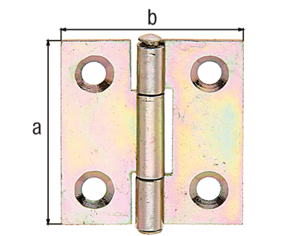 GAH Alberts Scharnier; Material: Stahl roh; Form: quadratisch; Oberfläche: sendzimirverzinkt; Befestigungsart: zum Anschrauben; Einsatzbereich: Tür; Basis: Scharnier; Ausführung: mit vernietetem Edelstahlstift,gerollt; Lochdurchmesser: 3,5 mm; Form Ecken: kantig; Höhe: 31 mm; Breite: 31 mm; Stärke: 0,75 mm; Anzahl Schraublöcher: 4 St.; Schraublochausführung: Senkkopf; Zusatzinformation: Gewerbeeinteilung dreiteilig; DIN-Richtung: DIN Links-Rechts