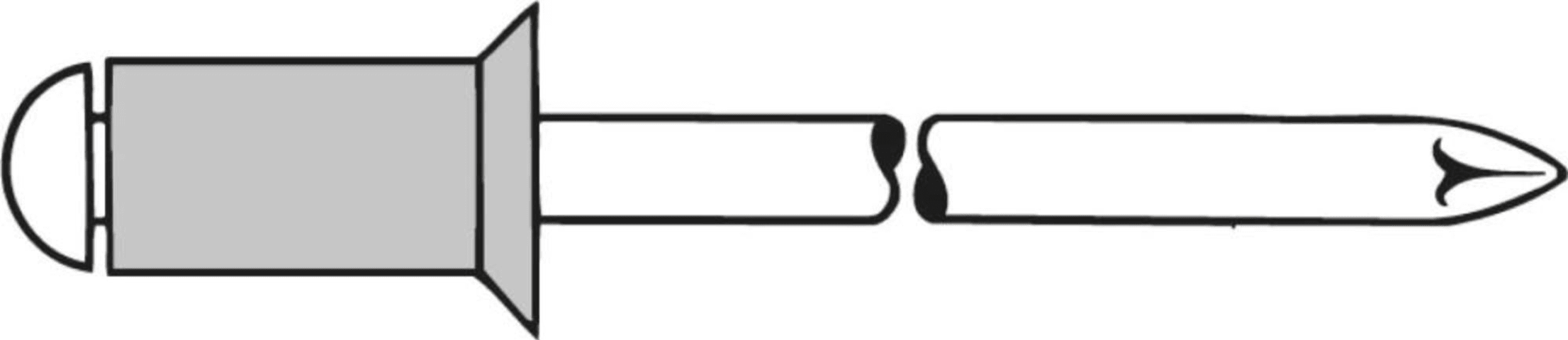 Blindniet, Alu/Stahl, Senkkopf 120°• Hohlniet: Alu AlMg 3 • Nietdorn: Stahl, verzinkt