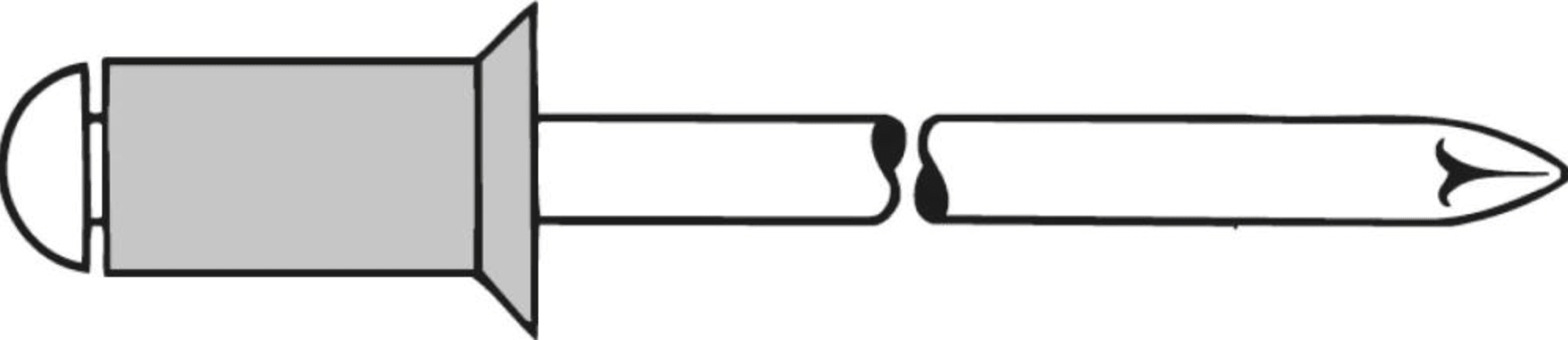 Blindniet, Alu/Stahl, Senkkopf 120°• Hohlniet: Alu AlMg 3 • Nietdorn: Stahl, verzinkt