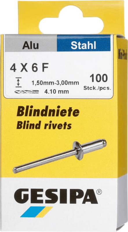 Blindniet Alu/Stahl Flachrundkopf Mini-Pack 4x6mm a 100Stück GESIPA