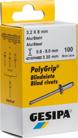 Meesenburg Artikelbezeichnung: GESIPA BLINDNIET MINI-PACK ALU/STAHL STD 4,0X12MM 100 ER PACK 1433535 6304257