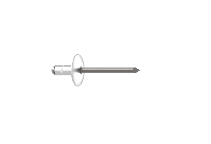 Mehrbereichs-Blindniet PolyGrip Alu/Stahl Alu/Stahl Großkopf. Hohlniet: Alu AlMg 2,5. Nietdorn: Stahl, verzinkt. Großer Klemmbereich mit nur einem Blindniet, gleicht Bohrlochtoleranzen aus. Auf Grun