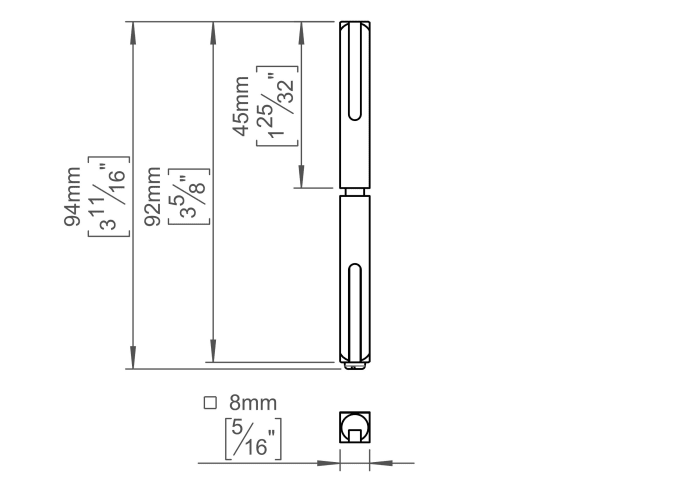 Knud Holscher Kollektion, geteilte Spindel, 8x8x92mm aus gehärtetem Stahl. 20 Jahre Garantie