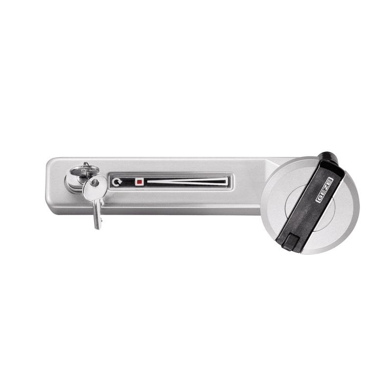 abschließbare Drehstellung mittels Zylinderschloss, Sonderbefugnis für Drehstellung Das Kurbeldrehkippbeschlagsystem F 1200 eignet sich für den Einsatz an Großflächen- und schwere Fenster. Es erfüllt
