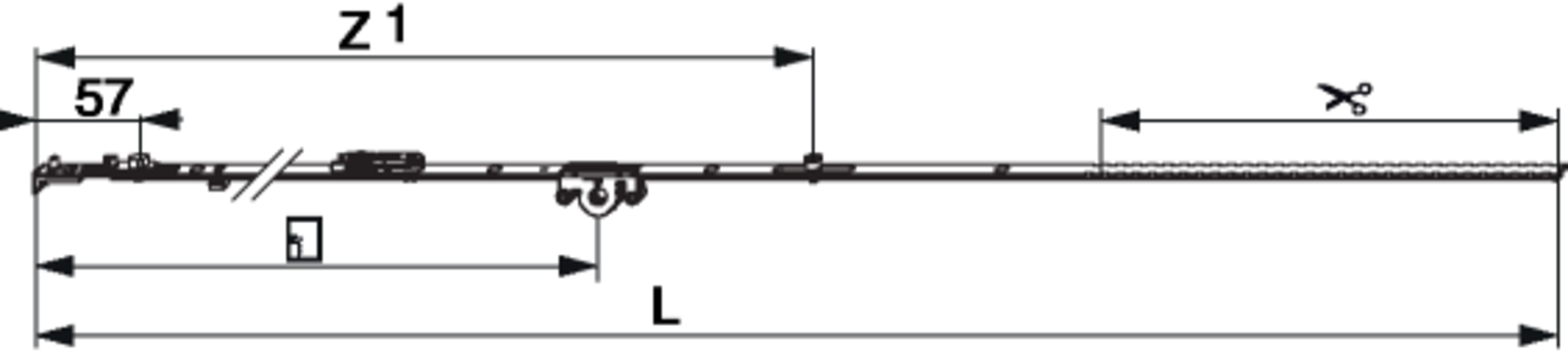 Maco MT Stulpflügelgetriebe fix Beschlagsnut mit montiertem Schließteil Gr.3 GM 500 FFH 1.001-1.250 silbe 54966