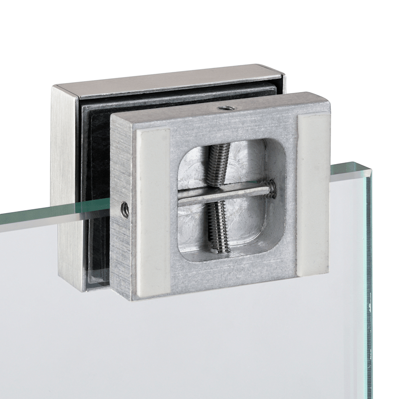 Glas/Glas - Klemmverbinder 6704, für Glasdicken 8-12 mm, Montage ohne Glasbohrung, Oberfl. 60 (Edelstahl matt)