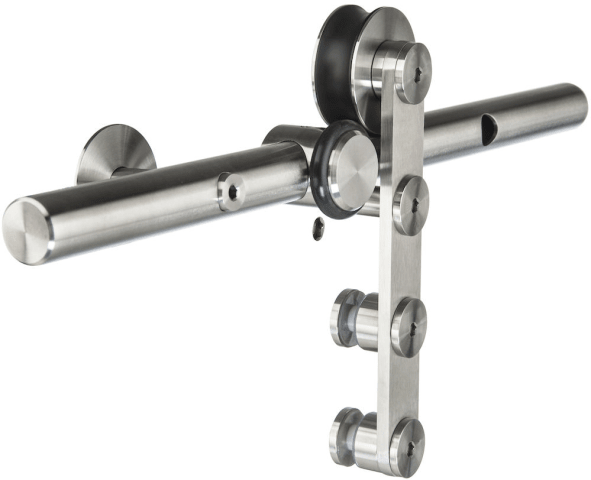 HERMAT Schiebetürbeschlag PESCARA 9341.R/GLAS; Flügelgewicht max.: 80 kg; Ausführung: mit Laufschiene; Material: Edelstahl; Laufprofildurchmesser: 25 mm; Einsatz Glasart: ESG/VSG; Einsatzbereich: Wohn