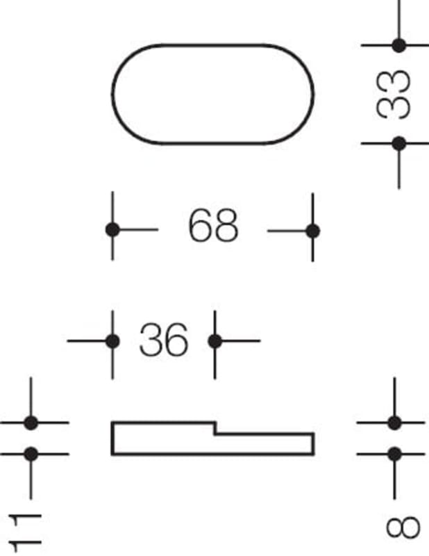 Glasfalzgriff für Balkontüren, zur verdeckten Verschraubung von vorn an Hebe- und Drehtüren, Maße: 68 x 33 x 11/8 mm.