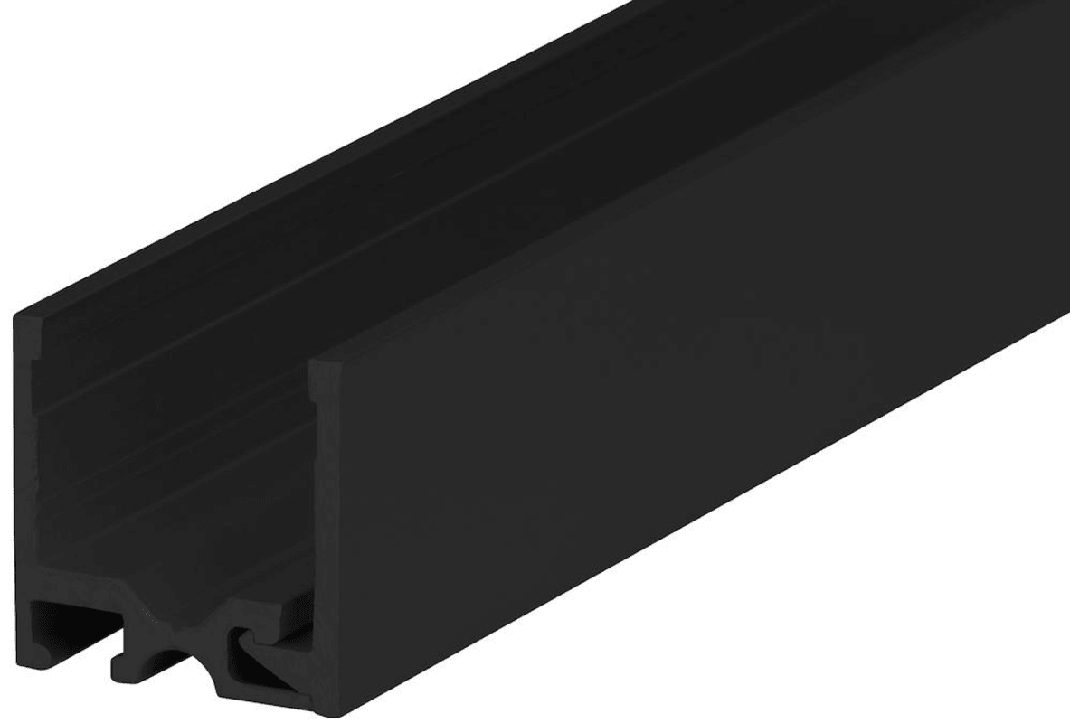 Glastrennwand-Bodenclipprofil 25 x 25 x 3000 mm, (auch als Wandprofil verwendbar), mit Bohrungen, ohne Befestigungsmaterial, mit Dichtung schwarz, für 12 mm Glasstärke, Oberfl. 74 (Classic Black elox.