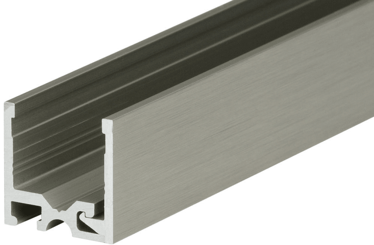 Glastrennwand-Bodenclipprofil 25 x 25 x 3000 mm, (auch als Wandprofil verwendbar), mit Bohrungen, ohne Befestigungsmaterial, mit Dichtung grau, für 12 mm Glasstärke, Oberfl. F9 (Edelstahlfarben)
