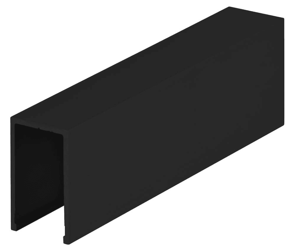 Glastrennwand-Deckenprofil 44 x 25 x 6000 mm, (auch als Wandprofil verwendbar), mit Bohrungen, ohne Befestigungsmaterial, mit Dichtung schwarz, für 12 mm Glasstärke, Oberfl. 74 (Classic Black elox., ä