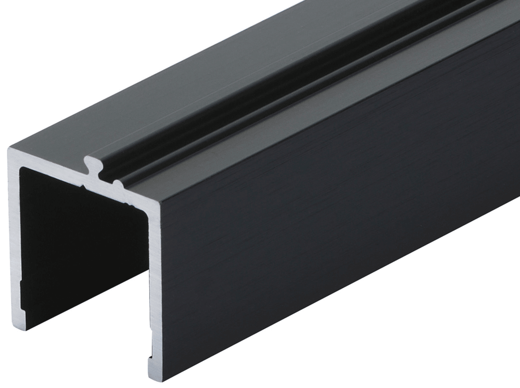 Glastrennwand-Zusatzprofil 25 x 25 mm, für feststehendes Seitenteil an San Remo, ohne Bohrungen und Befestigungsmaterial, ohne Dichtung, Länge 6100 mm, Oberfl. 74 (Classic Black elox., ähnl. RAL 9005)