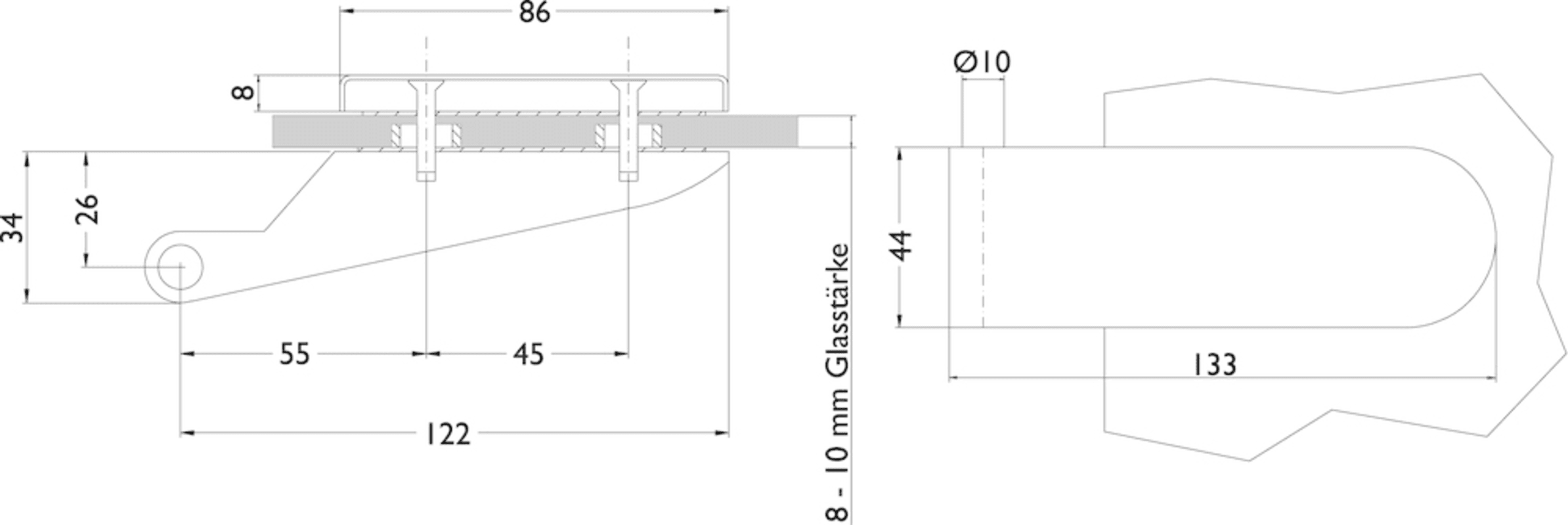 • 2 tlg. (Studiobohrung) ohne Rahmenteile • Incl. Hülsen für Rahmenteile • Max. empfohlene Türbreite 865 mm