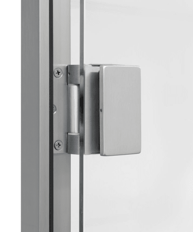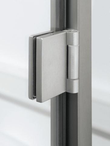 Glastür-Bandpaar 6335 kantig, mit Rahmenteil für Aluzargen zum Anschrauben, Tragkraft 55 kg pro Paar, Oberfl. 20 (Edelstahlfarben)